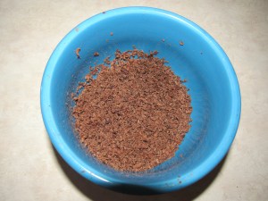 Grate 5 tablespoons of unsweetened Baker’s chocolate. (This is a little over an ounce—not enough for this chocolate lover. I’d suggest increasing this to 2 ounces.)