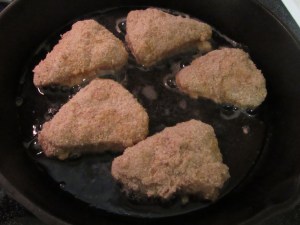 Once chilled, beat 2-3 eggs in one bowl. Bread crumbs should go in a different bowl.
