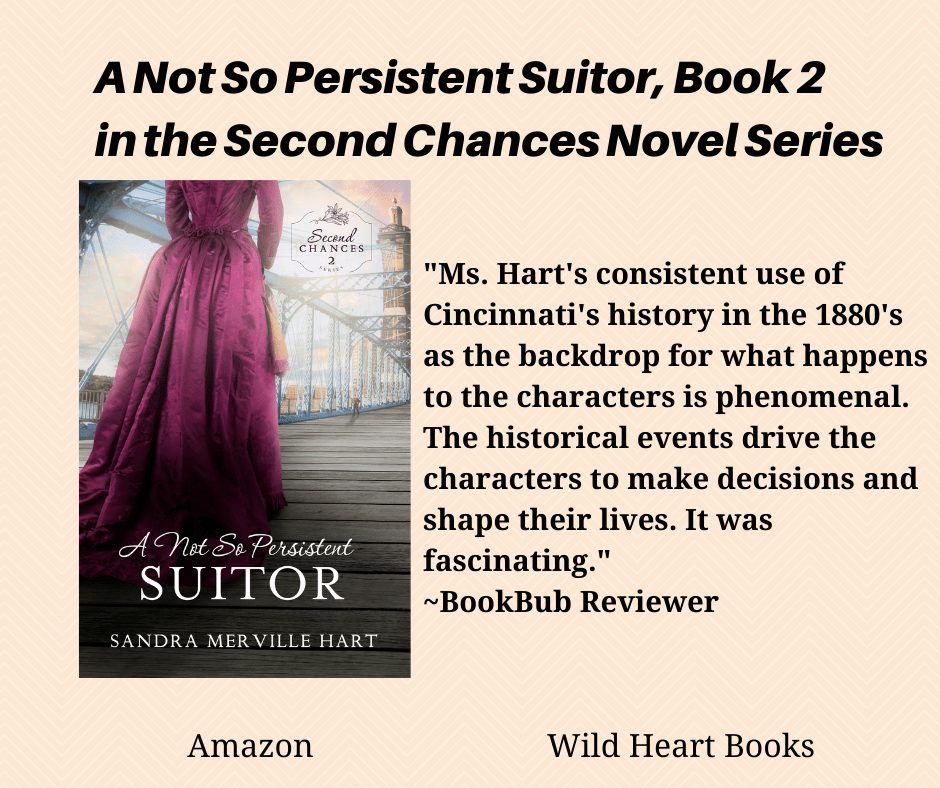 Writing this story allowed me to take my readers on a journey back to historic Cincinnati. See the sights of the beautiful city through the characters’ eyes in 1883-84.