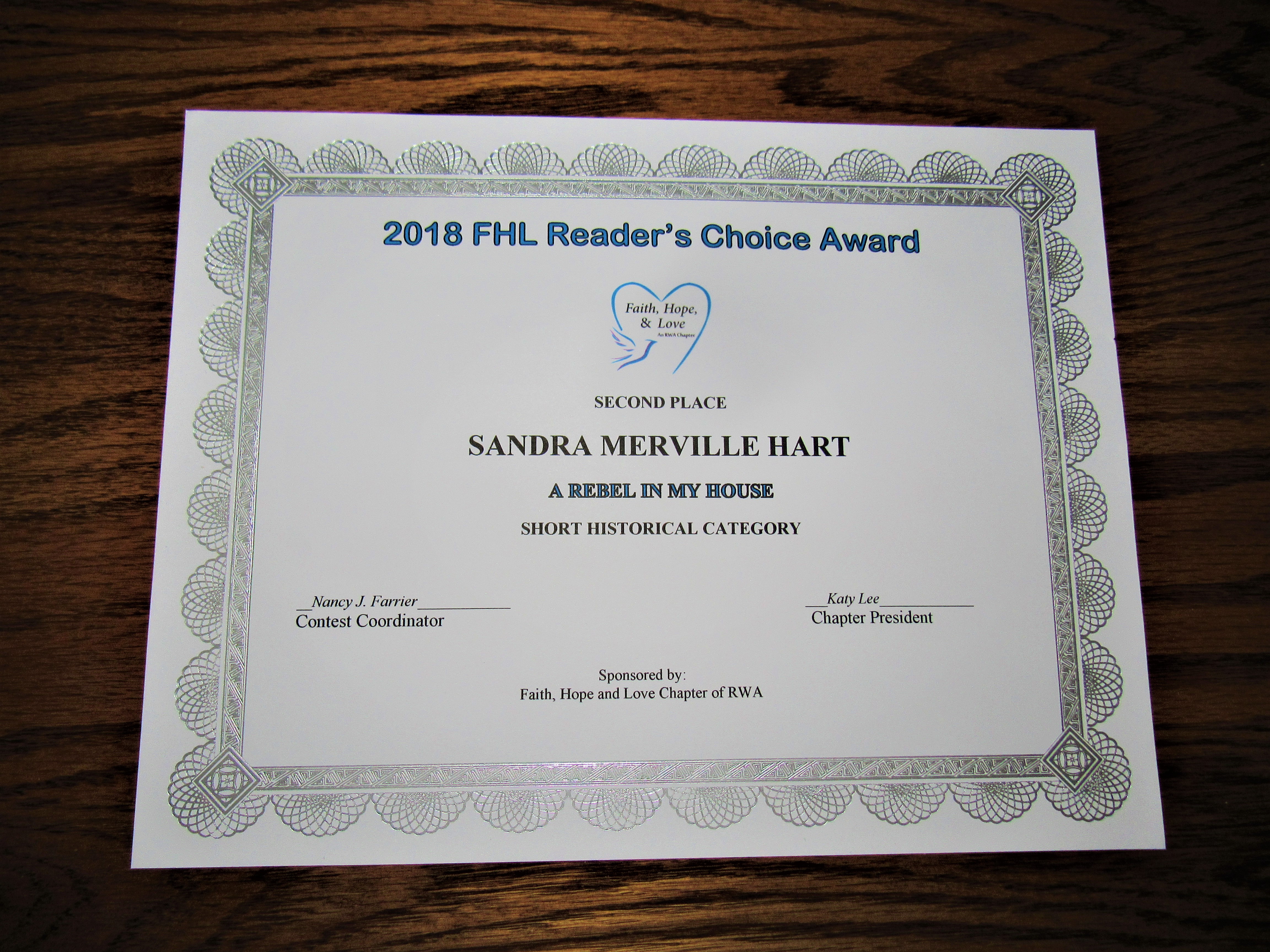 Sandra’s novel, A Rebel in My House, is a Civil War romance set in Gettysburg during the famous 1863 battle. This novel was awarded 2018 Illumination Silver Award and 2nd place in 2018 Finalist Faith Hope & Love Reader’s Choice Award!