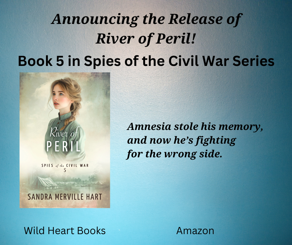 River of Peril, Book 5, tells the story of Felicity and Luke. They started courting before the war began. She volunteers as a nurse to distract her worry for her soldier—then her worst nightmare happens. Luke has been wounded in battle. Worse, he doesn’t remember her…or why he was fighting for the Confederacy when his loyalty is with the North. It begins in December of 1862.
