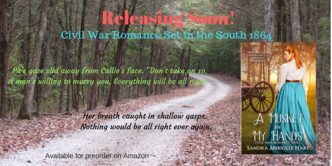 Sandra Merville Hart’s third Civil War romance, A Musket in My Hands, follows two sisters as they disguise themselves as soldiers and join the men they love in the Confederate army—just in time for the war to grow progressively difficult for Southern soldiers.
