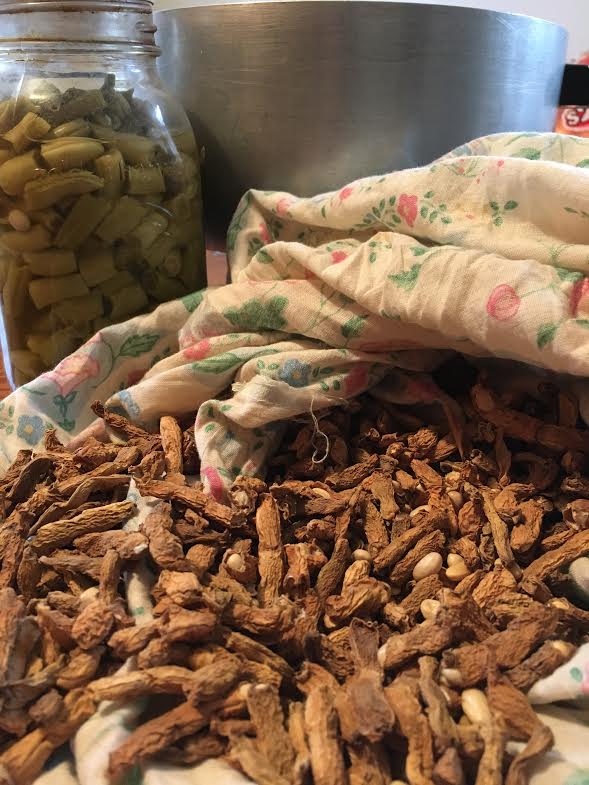 Remove from heat. Let it settle. If the patient is very sick, pour off the water on top and serve this way. The broth is grainy and a bit thicker than might be expected.