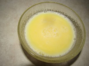 Pour the broth into a bowl. Add 2 tablespoons of light or heavy cream, 2 teaspoons of sugar, ½ teaspoon of cinnamon, and 1/8 teaspoon of ginger. Nutmeg can be substituted for the ginger. Stir well.