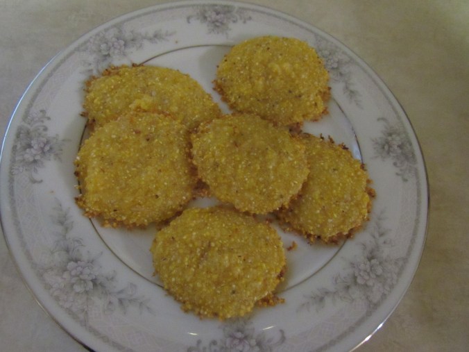 A recipe for corn crisps caught my eye. I’d never eaten them. The recipe is quick and easy so I decided to try it with two different corn meals.