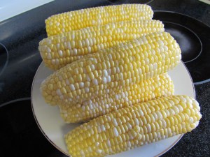 I cut the corn off two ears of corn. It yielded 1 ½ cups of corn so I modified the recipe in the book for this amount of the vegetable.