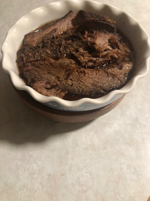 KD Holmberg, my dear friend and award-winning author, brought an amazing beef brisket to a writing retreat earlier this year. She had baked it ahead of time, and it only required reheating for a hearty and delicious supper. It was such a generous portion that it provided two meals! Not only is KD a talented author, but she is also an amazing cook.
