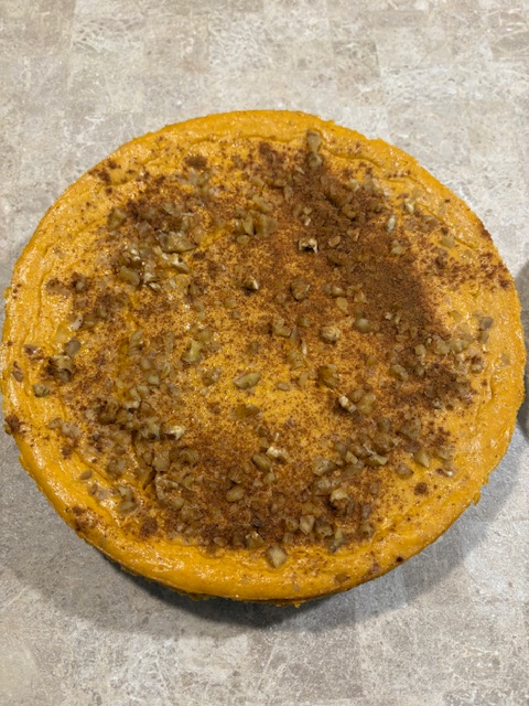 In the fall, I love to make desserts with seasonal flavors. I had discovered this great pumpkin cheesecake several years ago, but then I forgot about it. Last weekend, I made it for two different gatherings. Both friends and family loved it!