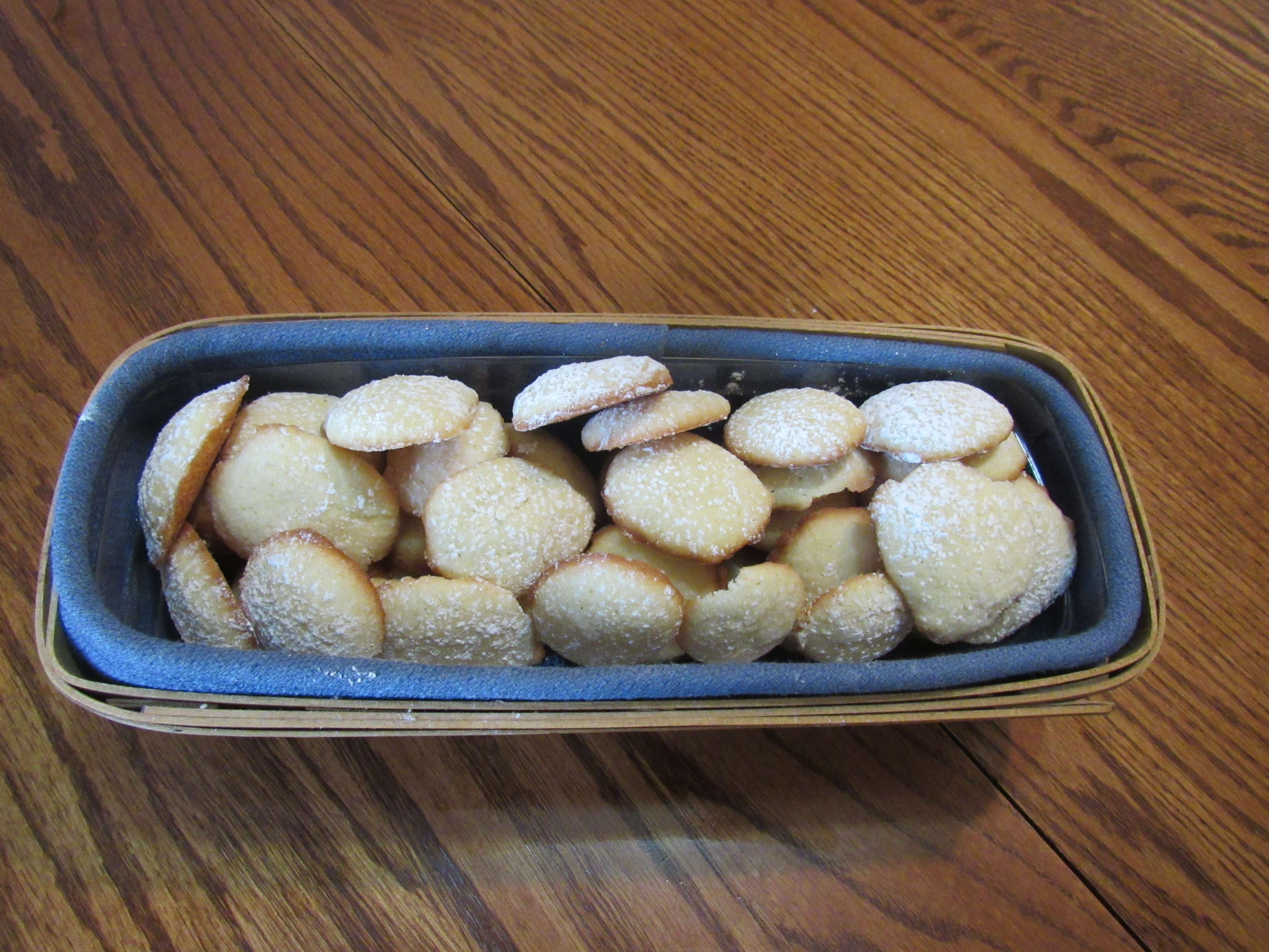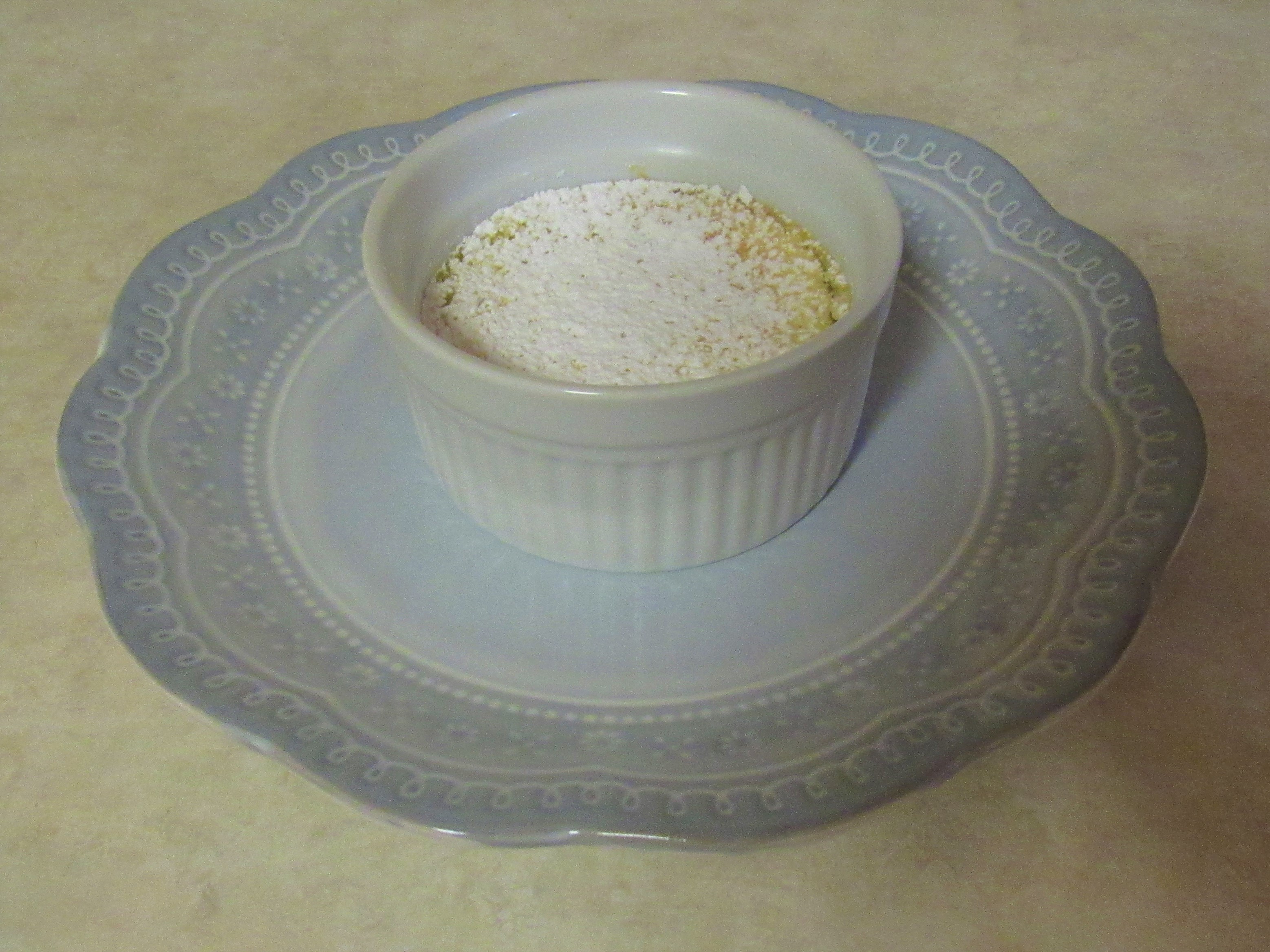 Bake in preheated oven at 350. If using 1 large dish, bake 50-60 minutes or until very lightly browned. Individual dishes take less time, about 30-35 minutes. When it was cool, I sprinkled powdered sugar over the top. Serve cool or cold.