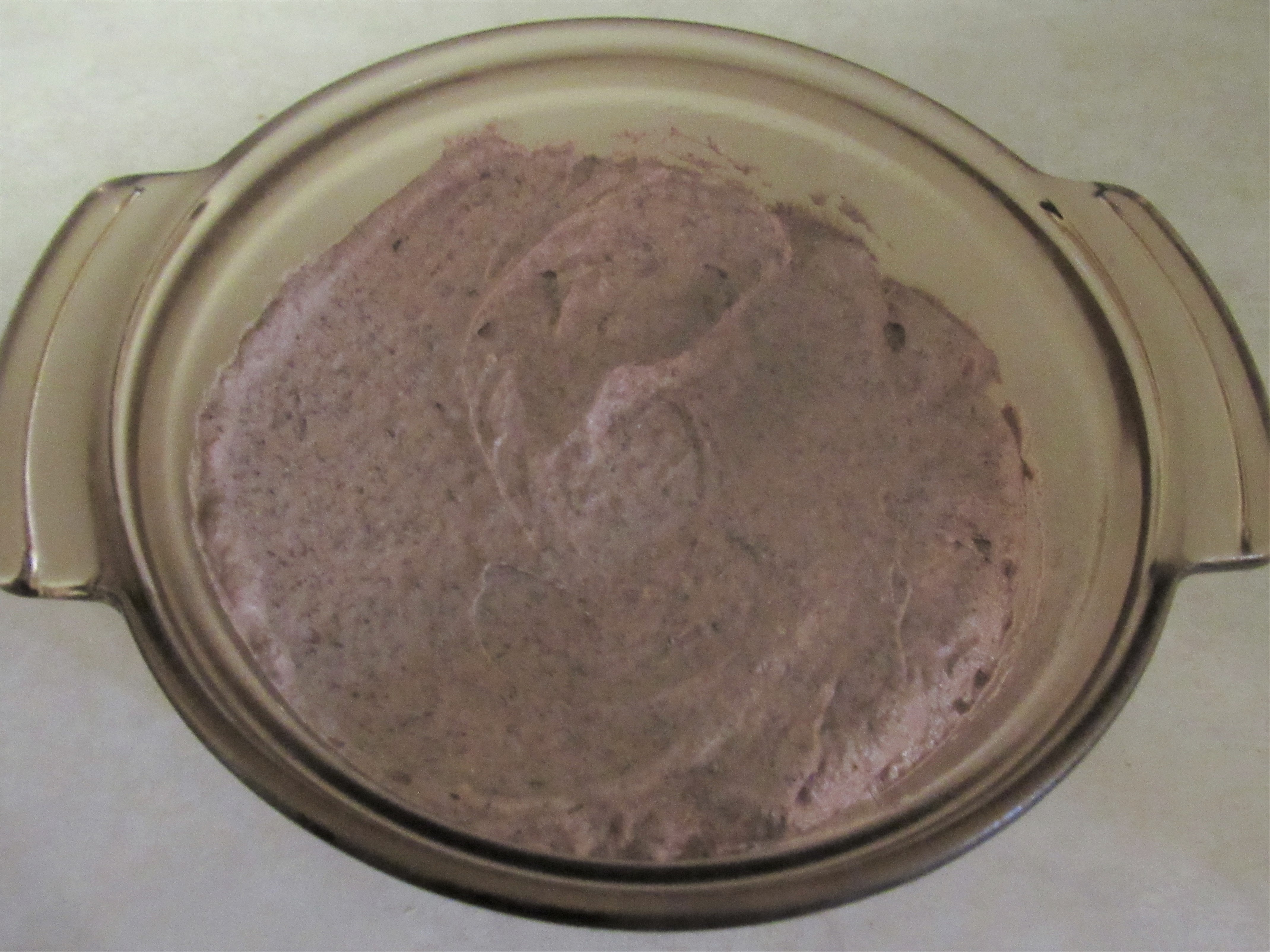 You can use a 1 ½ quart baking dish or ramekins for individual servings as I did. (Mine made 7 servings.) Prepare with cooking spray and spoon into the dish(es). Set in a pan and pour hot water around the dish until it is halfway up the side.