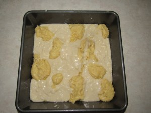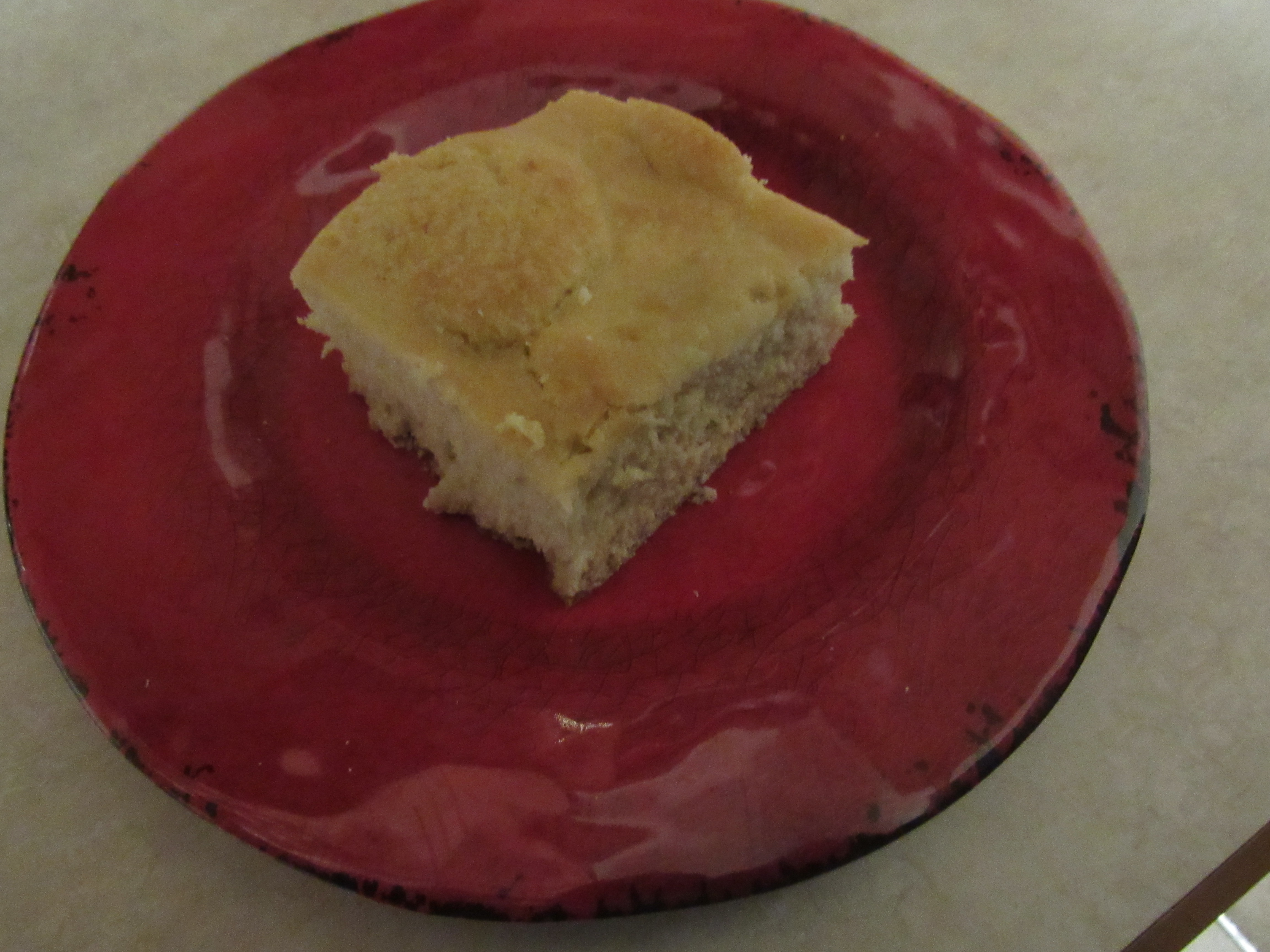 Since the original recipe called for 8 eggs, I calculated the portions for using 2 eggs. This smaller portion still made an 8 x 8 cake.